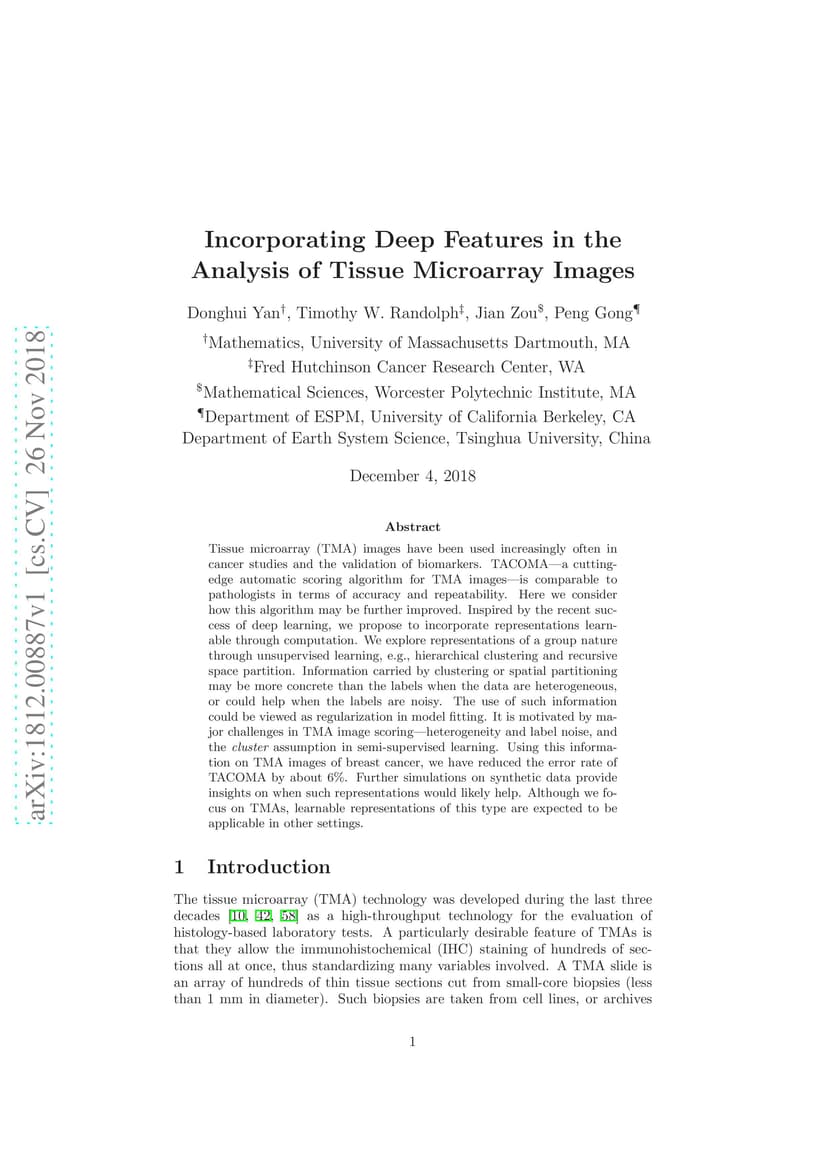 Incorporating Deep Features in the Analysis of Tissue Microarray Images