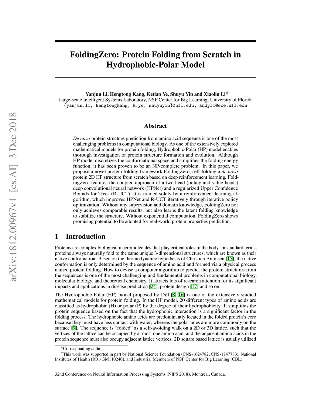 FoldingZero: Protein Folding from Scratch in Hydrophobic-Polar Model