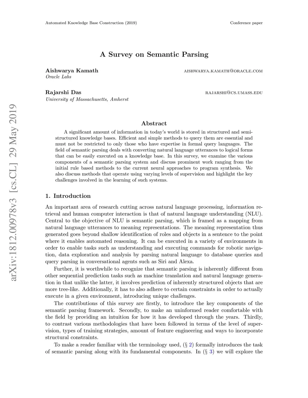 A Survey on Semantic Parsing
