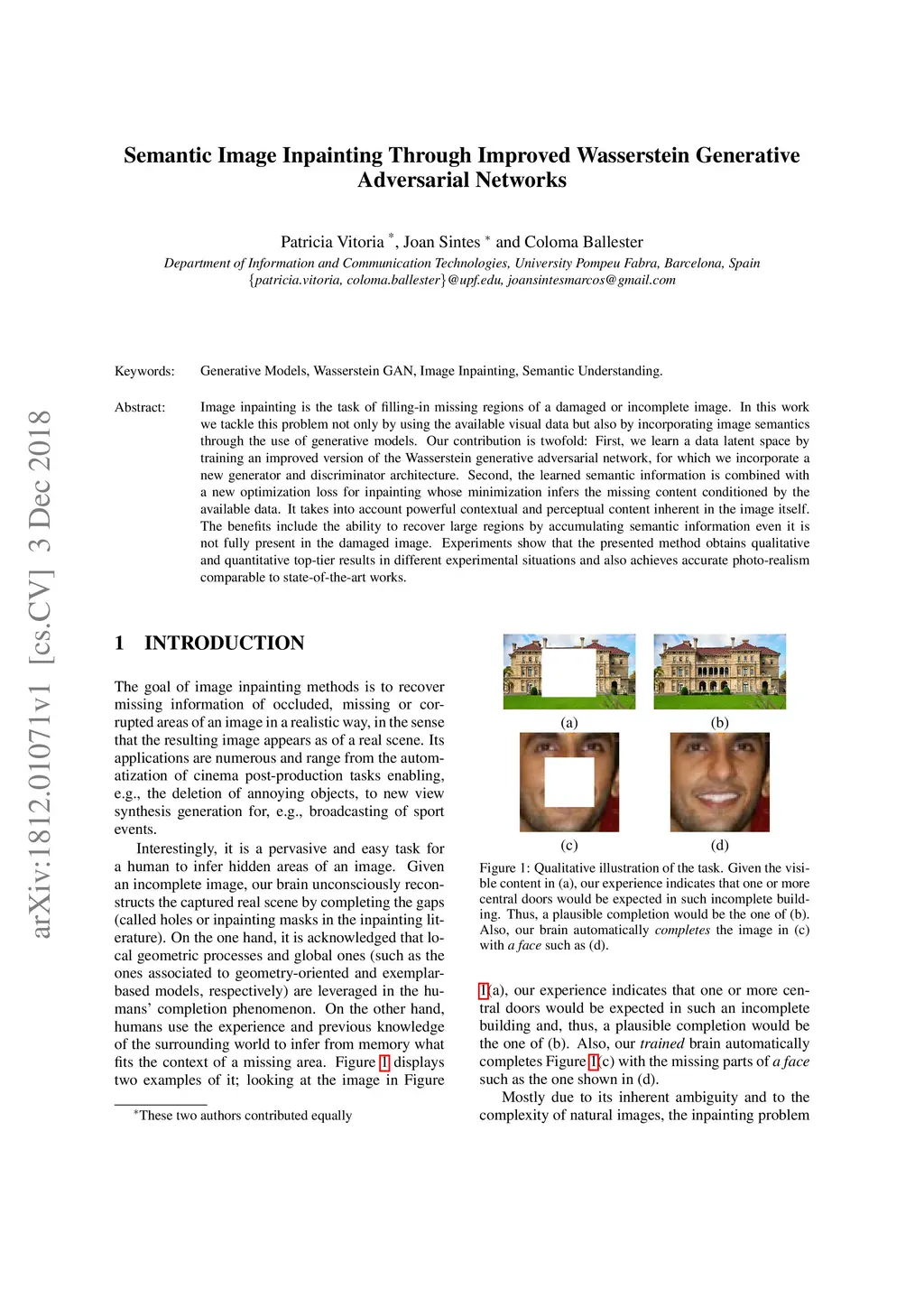 Semantic Image Inpainting Through Improved Wasserstein Generative