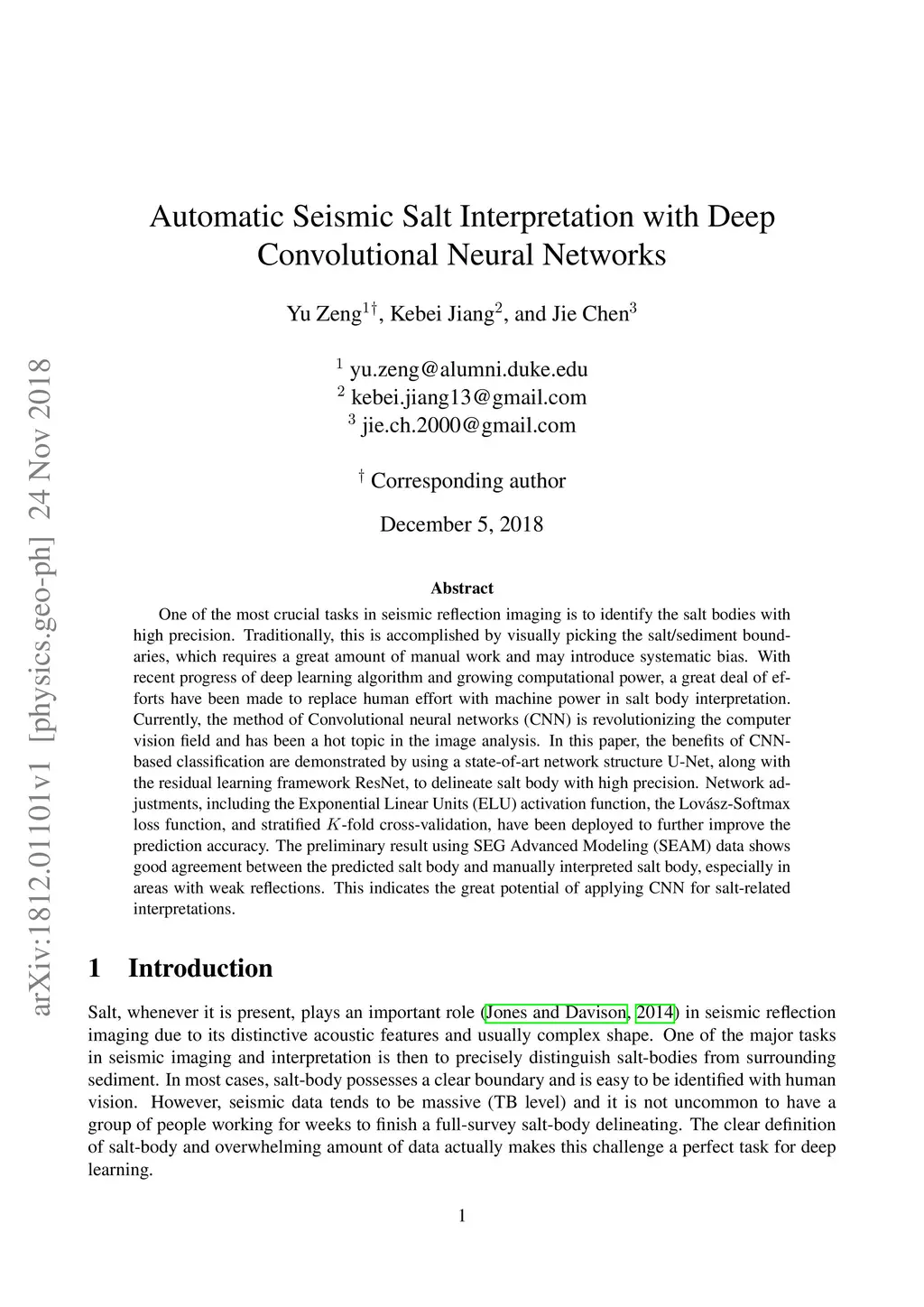 Automatic Seismic Salt Interpretation with Deep Convolutional Neural