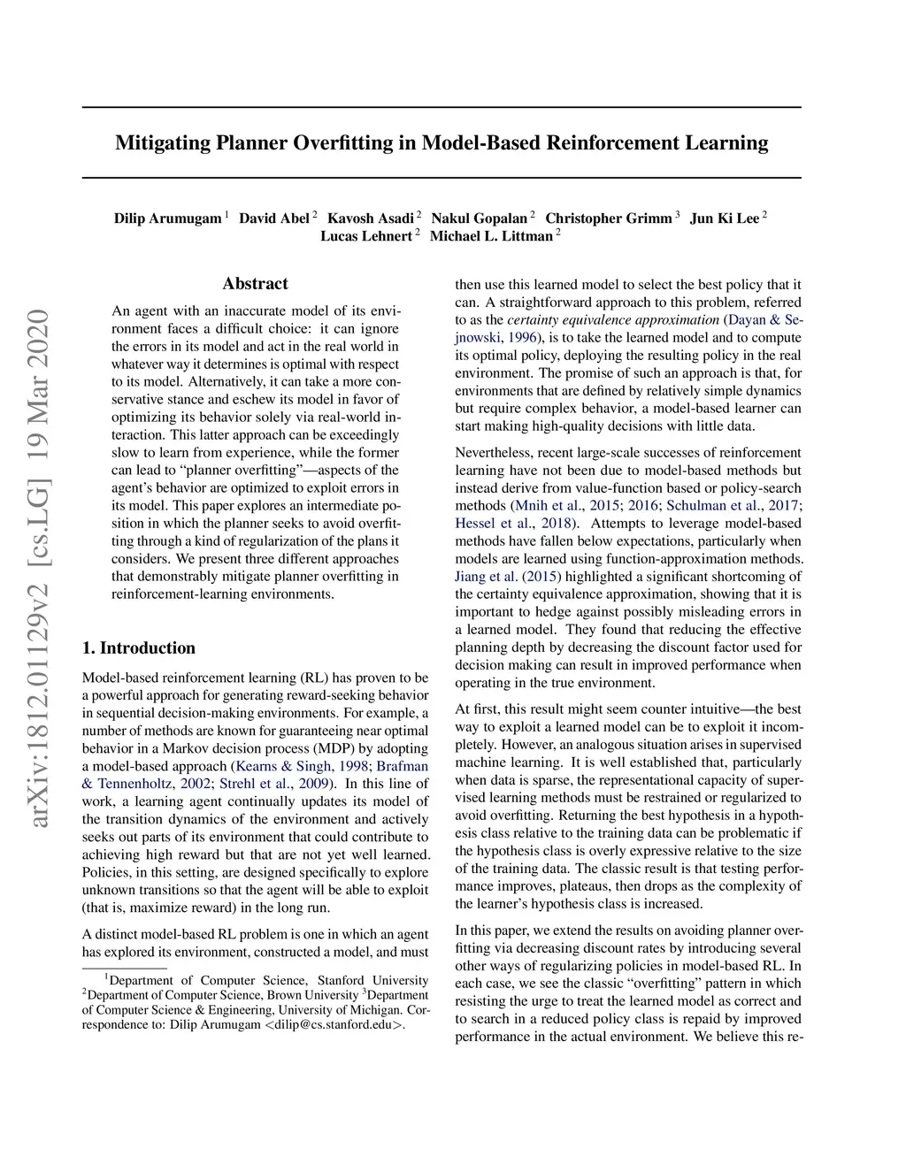 An agent with an inaccurate model of its environment faces a difficult choice: it can ignore the errors in its model and act in the real world in whatever way it determines is optimal with respect to its model. Alternatively, it can take a more conservative stance and eschew its model in favor of optimizing its behavior solely via real-world interaction. This latter approach can be exceedingly slow to learn from experience, while the former can lead to "planner overfitting" - aspects of the agent's behavior are optimized to exploit errors in its model. This paper explores an intermediate position in which the planner seeks to avoid overfitting through a kind of regularization of the plans it considers. We present three different approaches that demonstrably mitigate planner overfitting in reinforcement-learning environments.
