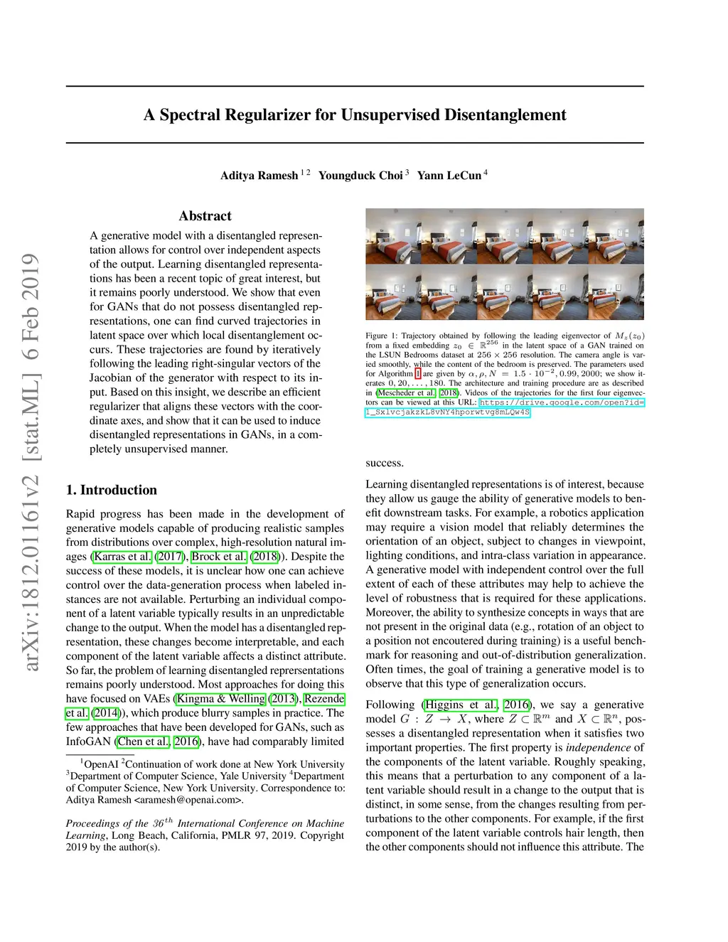A generative model with a disentangled representation allows for independent control over different aspects of the output. Learning disentangled representations has been a recent topic of great interest, but it remains poorly understood. We show that even for GANs that do not possess disentangled representations, one can find curved trajectories in latent space over which local disentanglement occurs. These trajectories are found by iteratively following the leading right-singular vectors of the Jacobian of the generator with respect to its input. Based on this insight, we describe an efficient regularizer that aligns these vectors with the coordinate axes, and show that it can be used to induce disentangled representations in GANs, in a completely unsupervised manner.