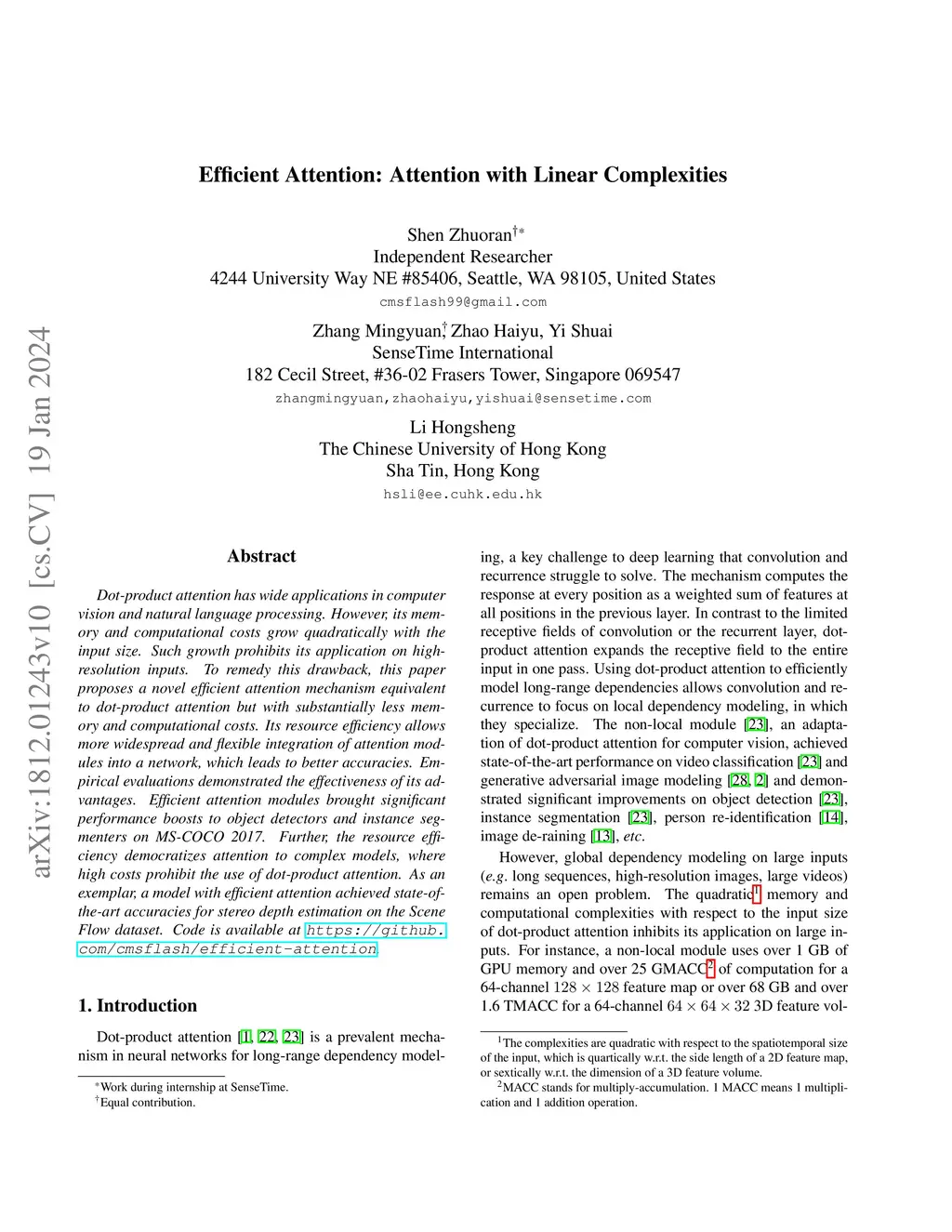 Efficient Attention: Attention with Linear Complexities
