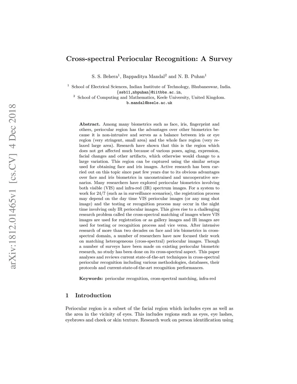 Cross-spectral Periocular Recognition: A Survey