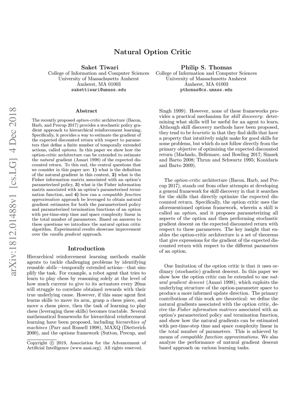 Natural Option Critic