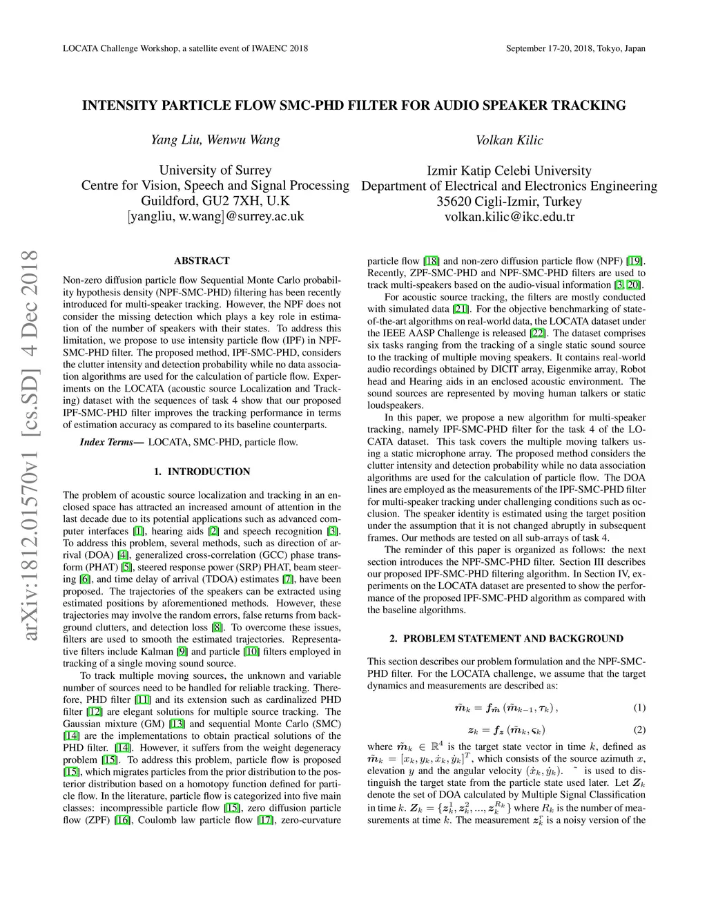 Intensity Particle Flow SMC-PHD Filter For Audio Speaker Tracking