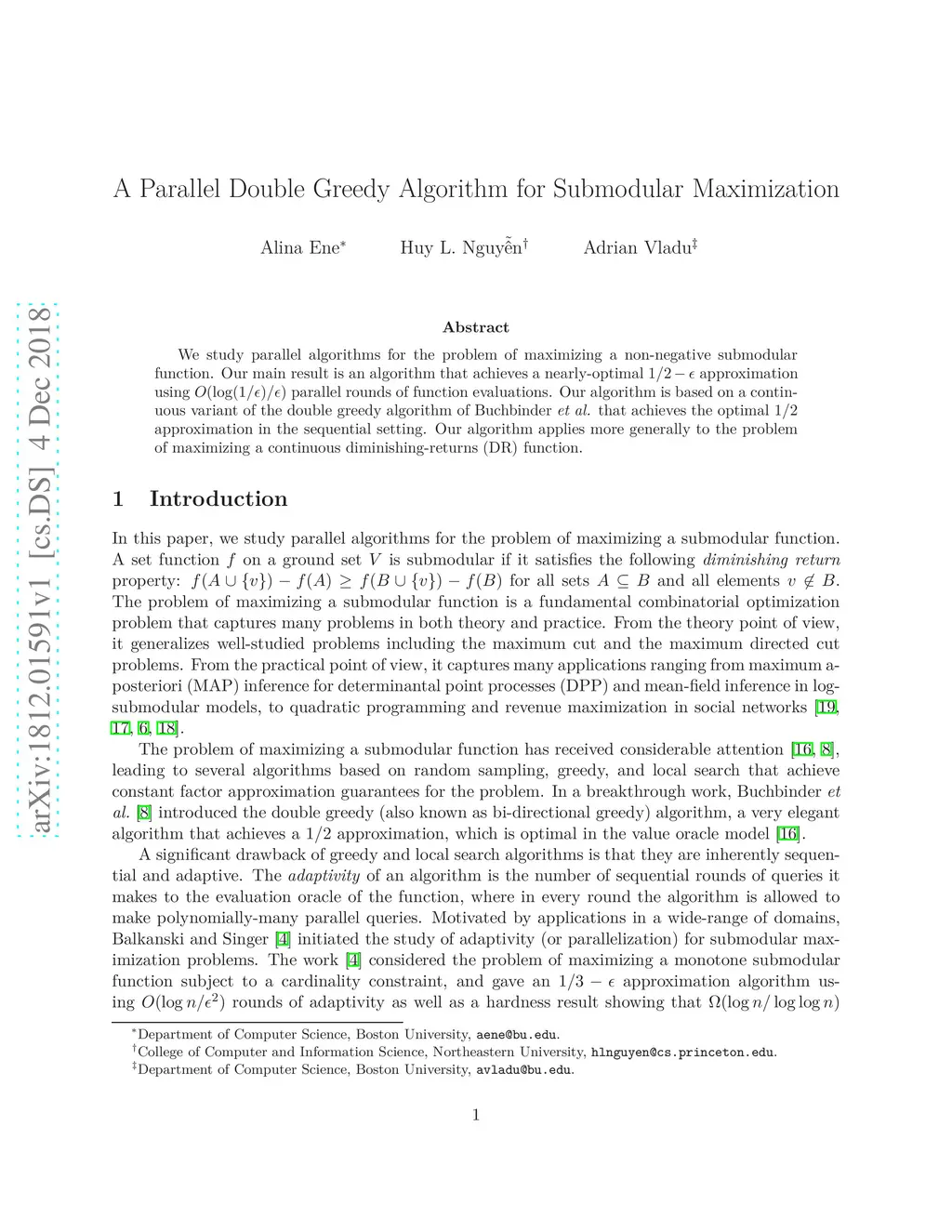 A Parallel Double Greedy Algorithm for Submodular Maximization