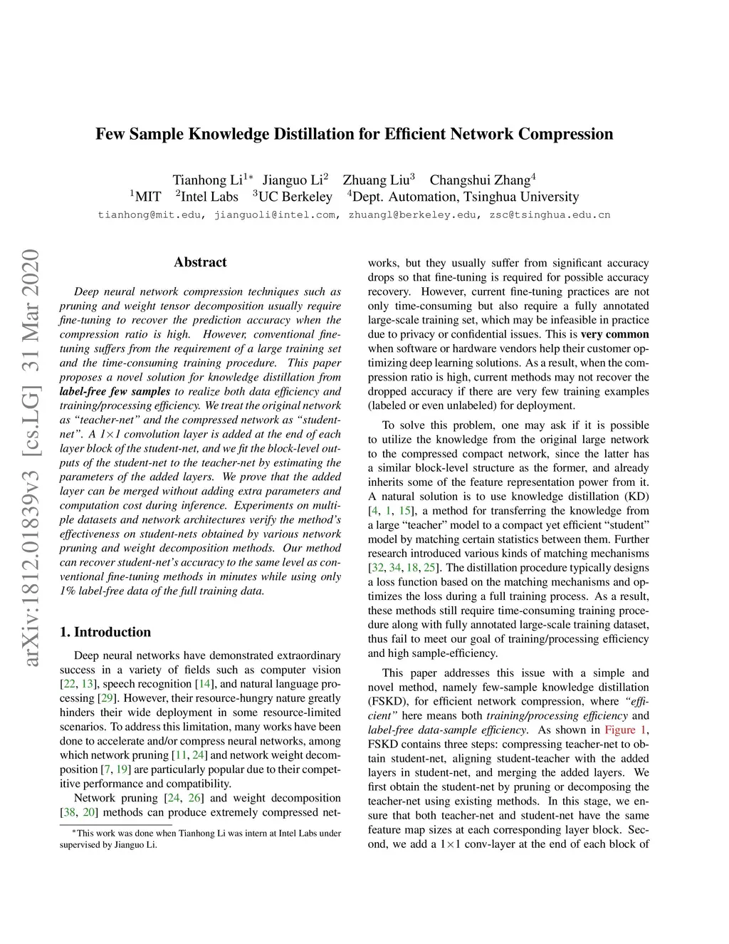 Few Sample Knowledge Distillation for Efficient Network Compression