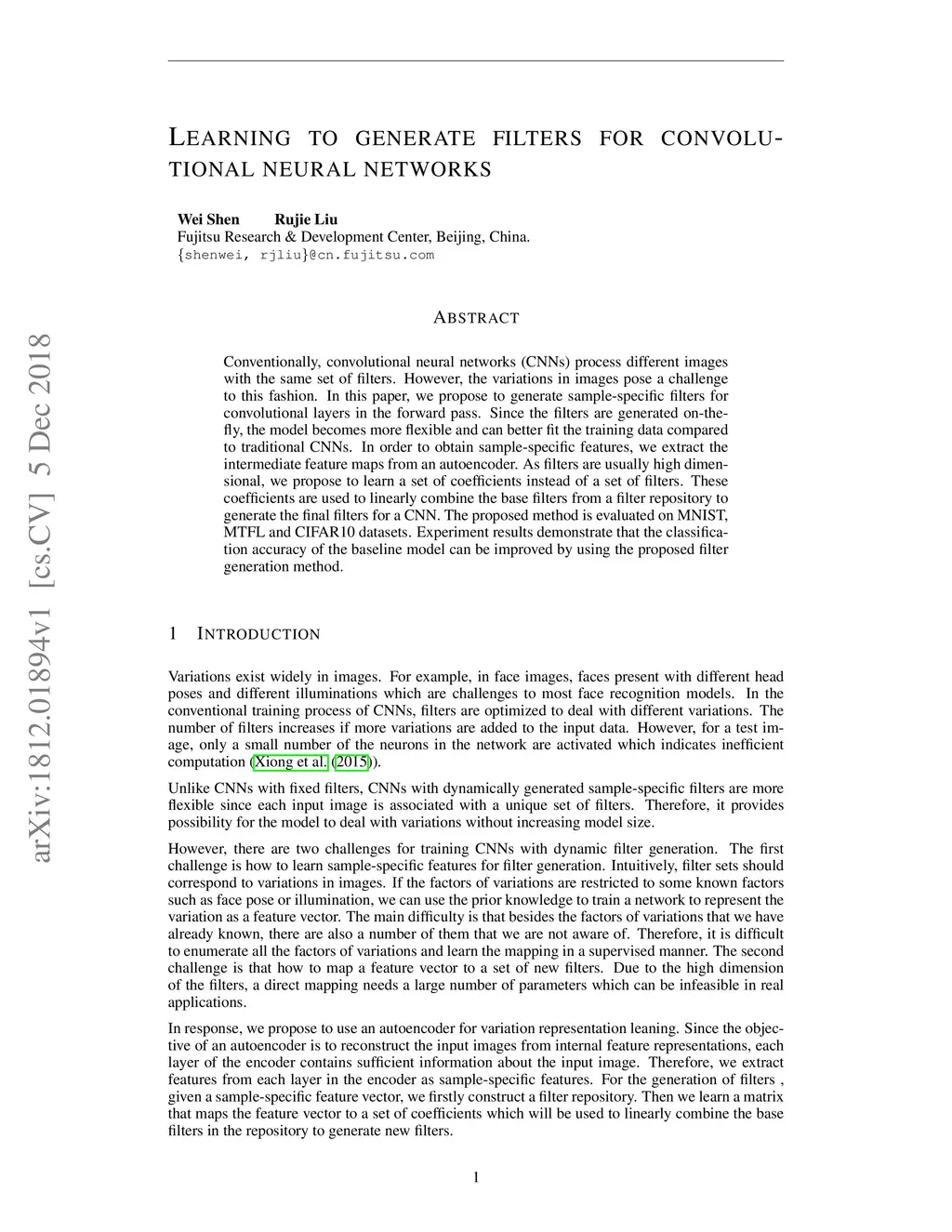 Learning to generate filters for convolutional neural networks