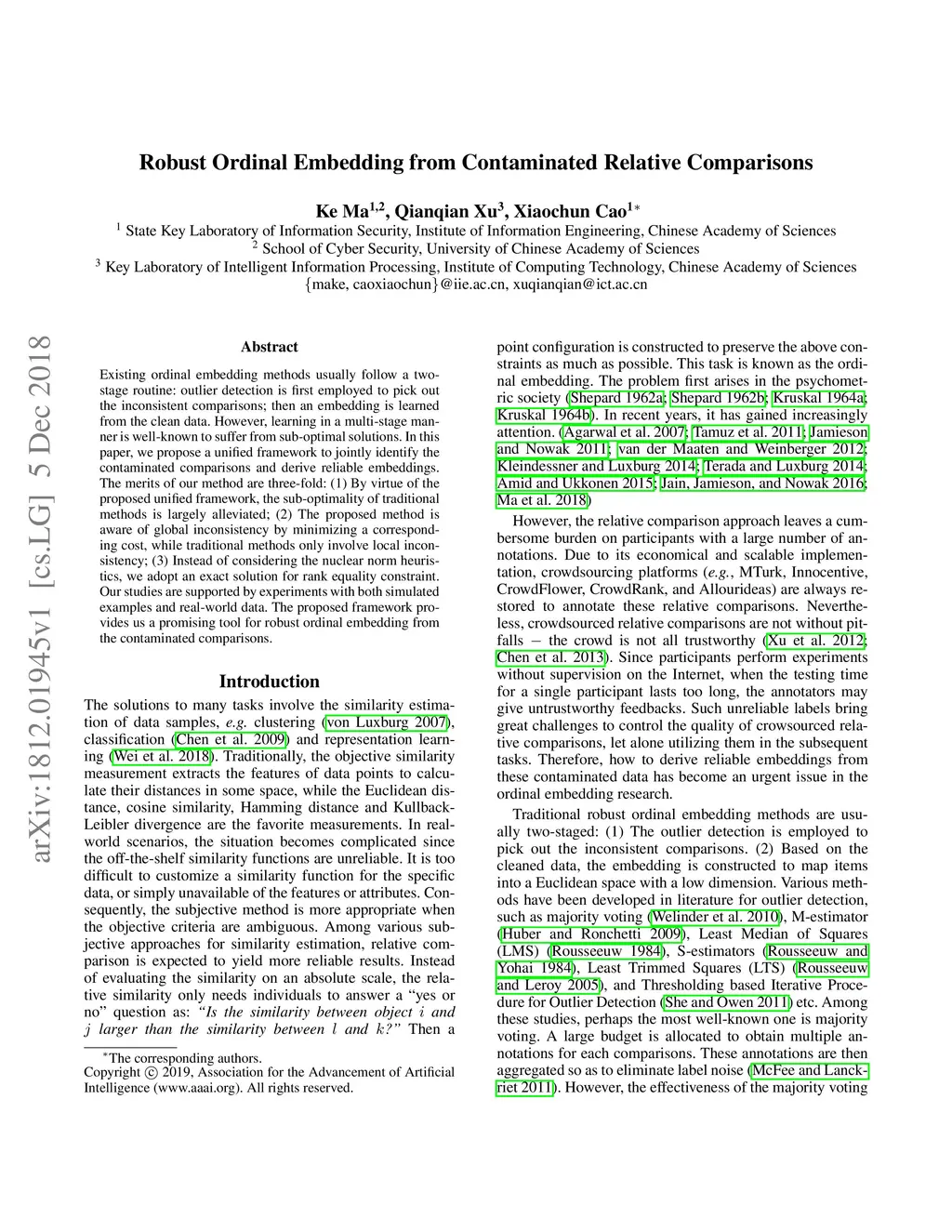 Robust Ordinal Embedding from Contaminated Relative Comparisons