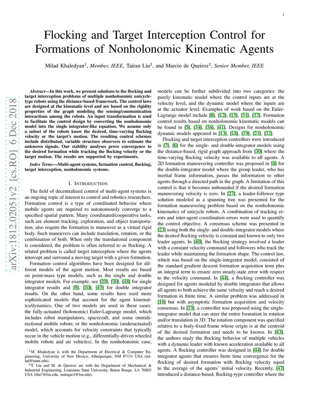 Flocking and Target Interception Control for Formations of Nonholonomic