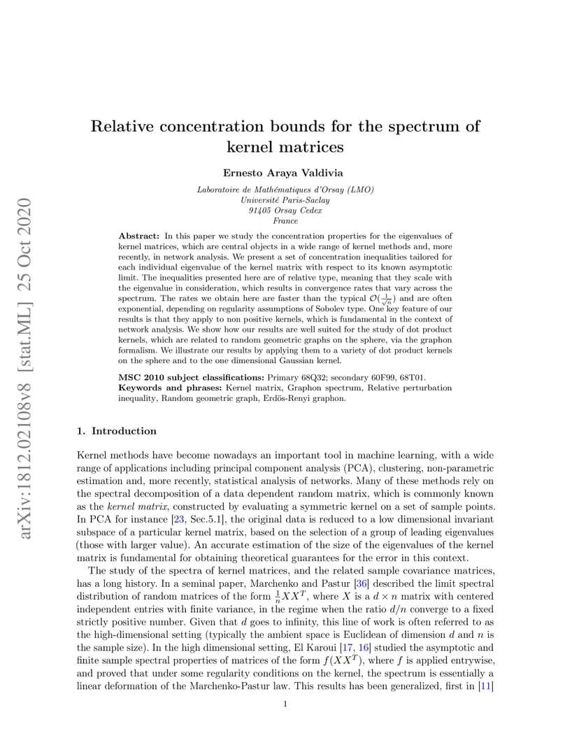 In this paper we study the concentration properties for the eigenvalues of kernel matrices, which are central objects in a wide range of kernel methods and, more recently, in network analysis. We present a set of concentration inequalities tailored for each individual eigenvalue of the kernel matrix with respect to its known asymptotic limit. The inequalities presented here are of relative type, meaning that they scale with the eigenvalue in consideration, which results in convergence rates that vary across the spectrum. The rates we obtain here are faster than the typical and are often exponential, depending on regularity assumptions of Sobolev type. One key feature of our results is that they apply to non positive kernels, which is fundamental in the context of network analysis. We show how our results are well suited for the study of dot product kernels, which are related to random geometric graphs on the sphere, via the graphon formalism. We illustrate our results by applying them to a variety of dot product kernels on the sphere and to the one dimensional Gaussian kernel.