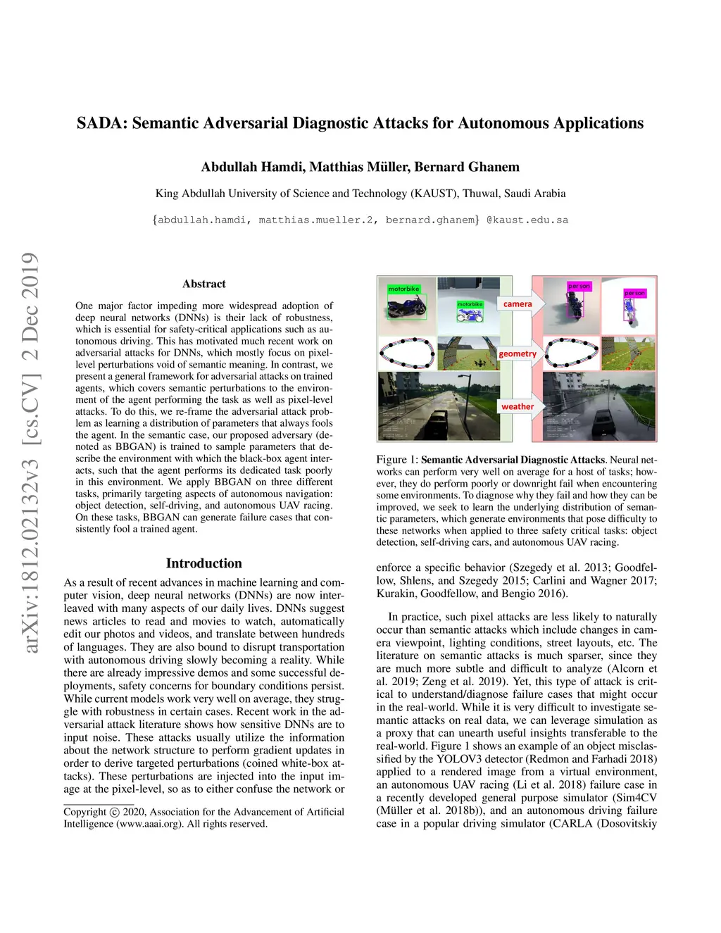SADA: Semantic Adversarial Diagnostic Attacks for Autonomous
