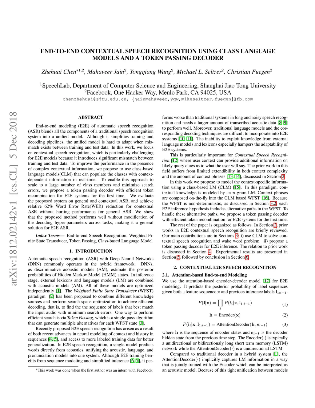 End-to-end modeling (E2E) of automatic speech recognition (ASR) blends all the components of a traditional speech recognition system into a unified model. Although it simplifies training and decoding pipelines, the unified model is hard to adapt when mismatch exists between training and test data. In this work, we focus on contextual speech recognition, which is particularly challenging for E2E models because it introduces significant mismatch between training and test data. To improve the performance in the presence of complex contextual information, we propose to use class-based language models(CLM) that can populate the classes with contextdependent information in real-time. To enable this approach to scale to a large number of class members and minimize search errors, we propose a token passing decoder with efficient token recombination for E2E systems for the first time. We evaluate the proposed system on general and contextual ASR, and achieve relative 62% Word Error Rate(WER) reduction for contextual ASR without hurting performance for general ASR. We show that the proposed method performs well without modification of the decoding hyper-parameters across tasks, making it a general solution for E2E ASR.