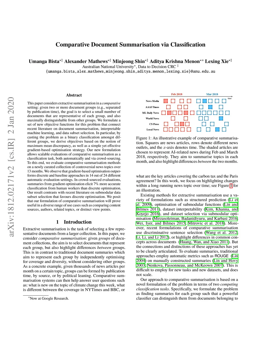 Comparative Document Summarisation via Classification