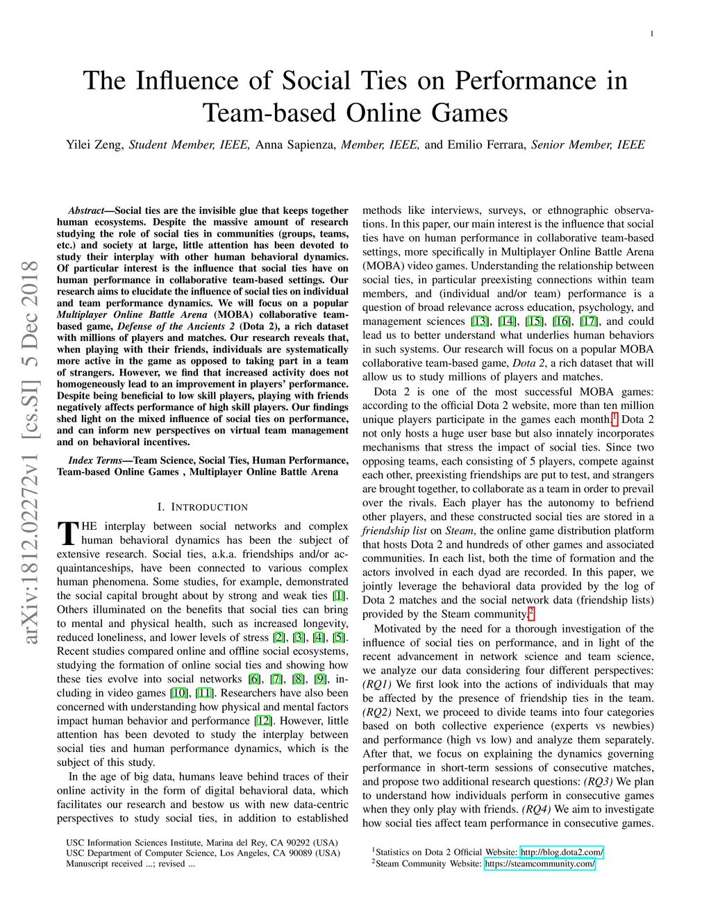 The Influence of Social Ties on Performance in Team-based Online Games