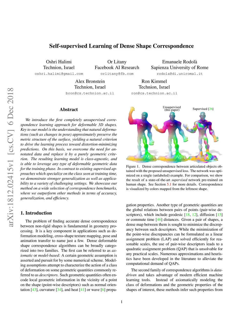 Self-supervised Learning of Dense Shape Correspondence