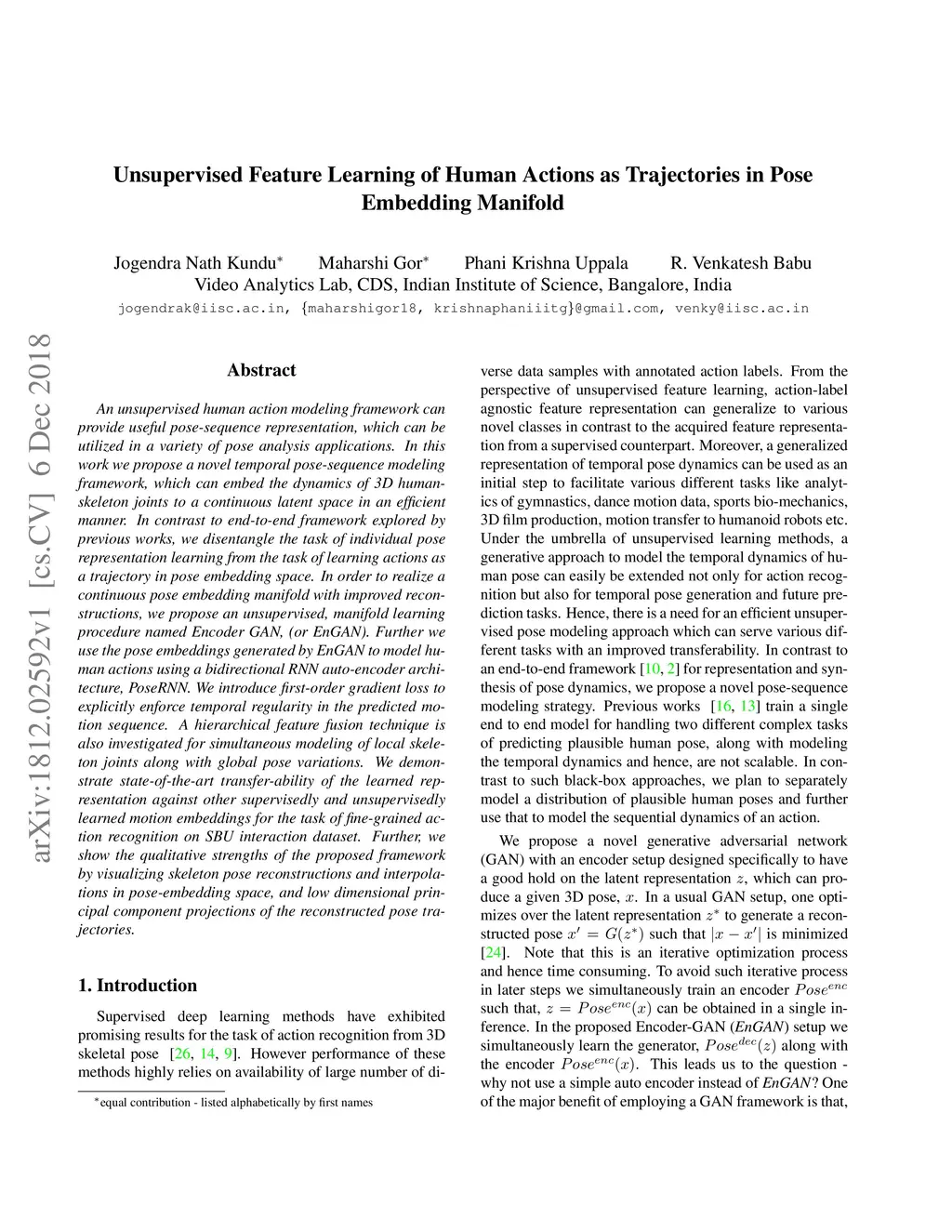 Unsupervised Feature Learning of Human Actions as Trajectories in Pose