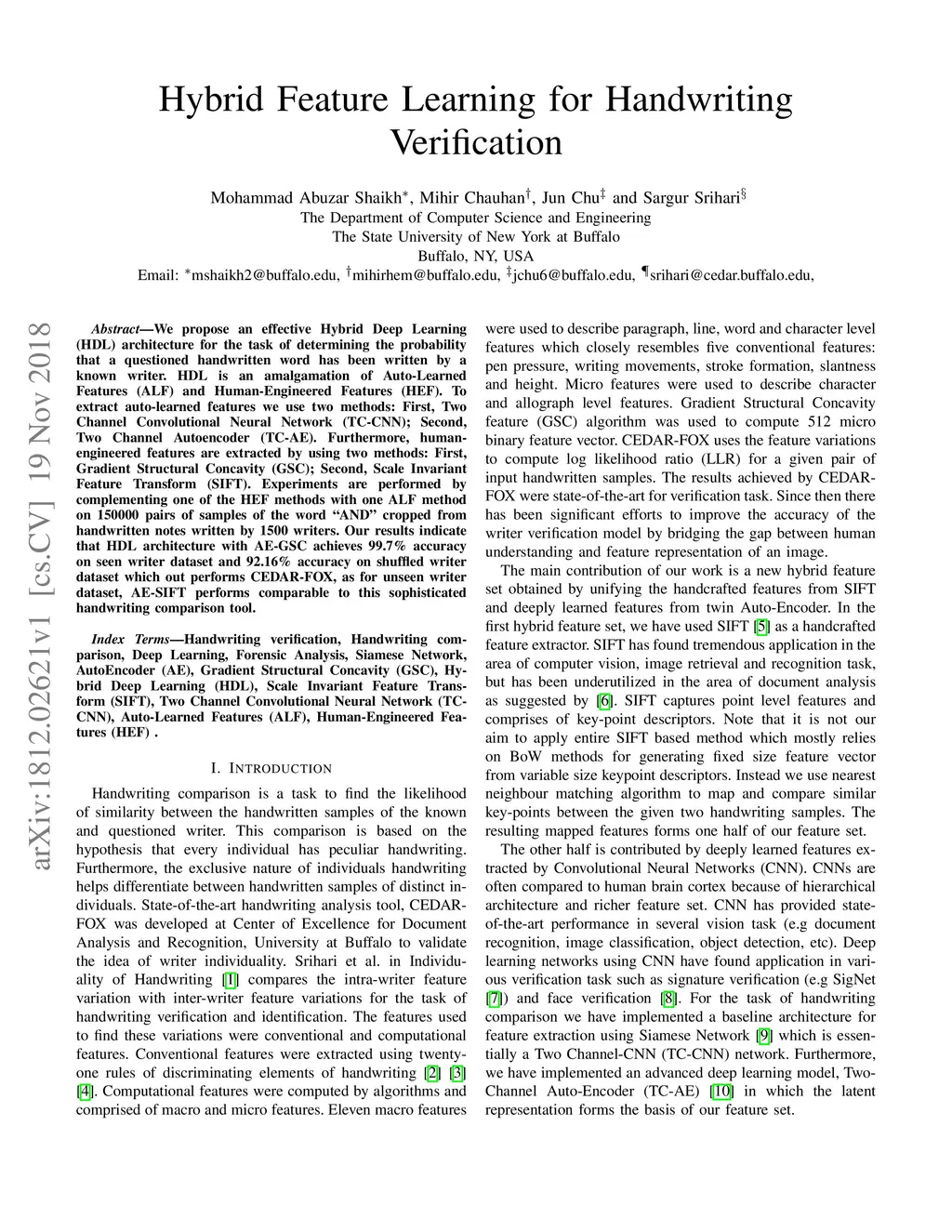 Hybrid Feature Learning for Handwriting Verification