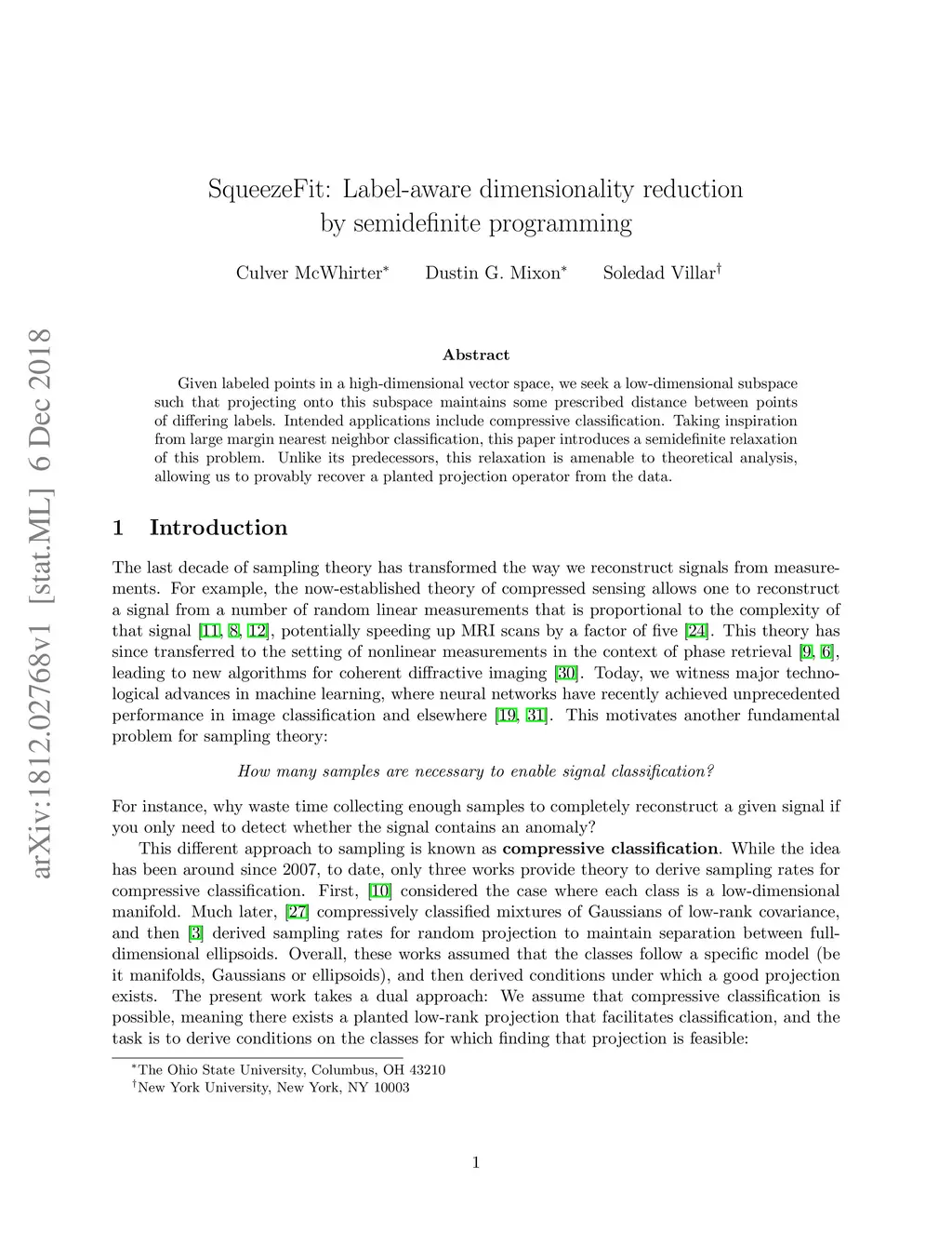 SqueezeFit: Label-aware dimensionality reduction by semidefinite