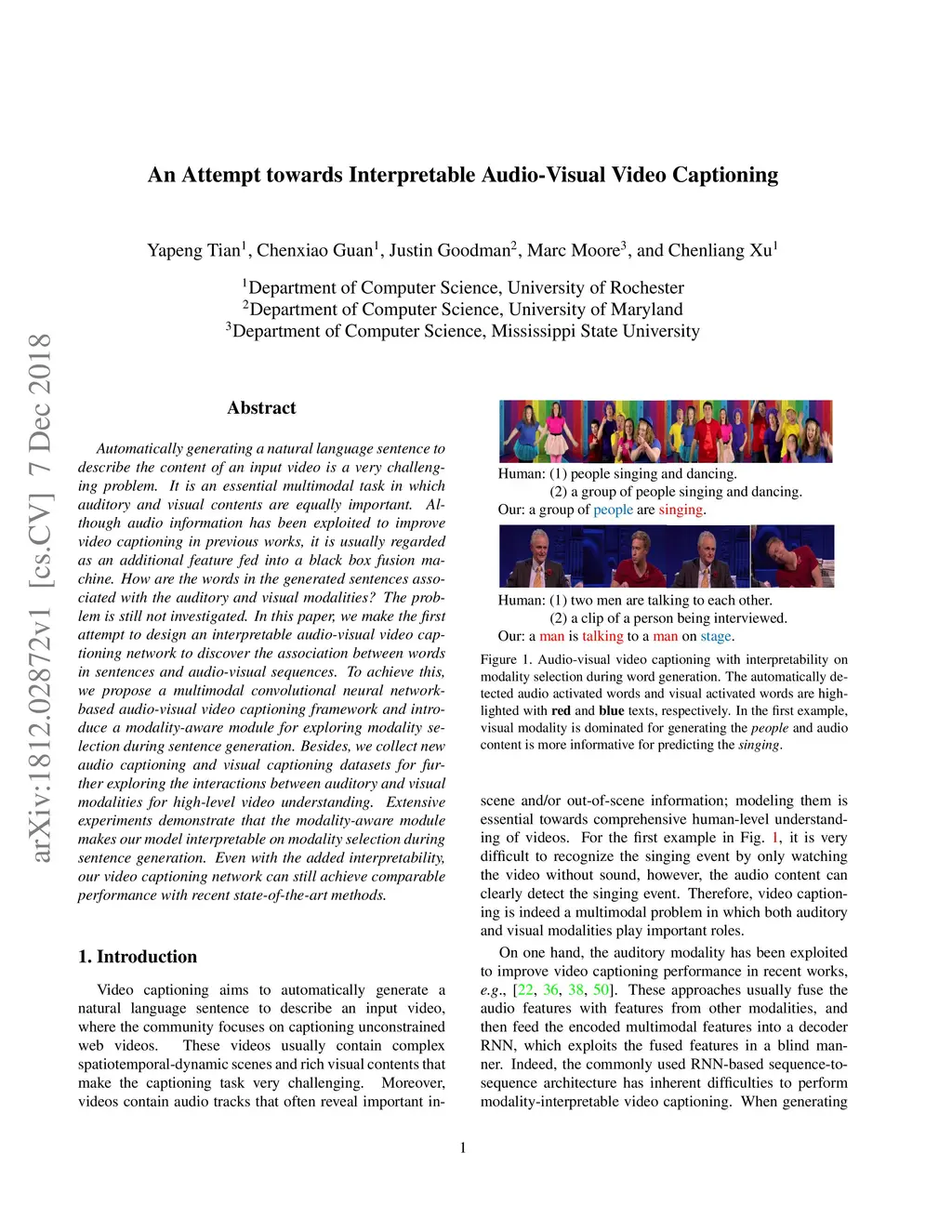 An Attempt towards Interpretable Audio-Visual Video Captioning