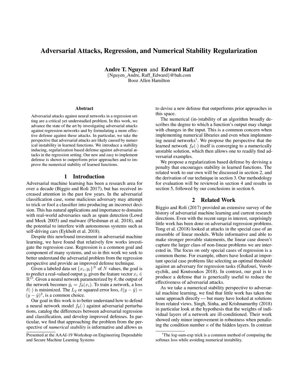 Adversarial attacks against neural networks in a regression setting are a critical yet understudied problem. In this work, we advance the state of the art by investigating adversarial attacks against regression networks and by formulating a more effective defense against these attacks. In particular, we take the perspective that adversarial attacks are likely caused by numerical instability in learned functions. We introduce a stability inducing, regularization based defense against adversarial attacks in the regression setting. Our new and easy to implement defense is shown to outperform prior approaches and to improve the numerical stability of learned functions.