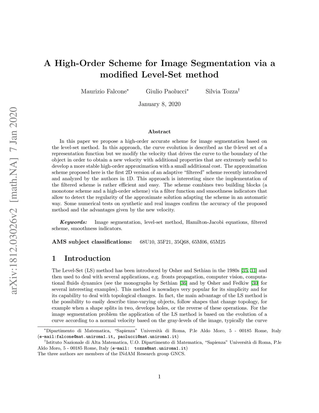 A High-Order Scheme for Image Segmentation via a modified Level-Set