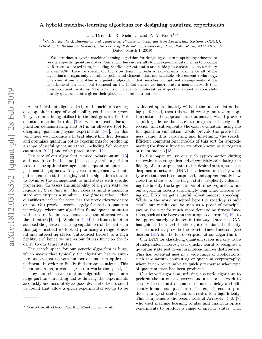 We introduce a hybrid machine-learning algorithm for designing quantum optics experiments that produce specific quantum states. Our algorithm successfully found experimental schemes to produce all 5 states we asked it to, including Schr\"odinger cat states and cubic phase states, all to a fidelity of over . Here we specifically focus on designing realistic experiments, and hence all of the algorithm's designs only contain experimental elements that are available with current technology. The core of our algorithm is a genetic algorithm that searches for optimal arrangements of the experimental elements, but to speed up the initial search we incorporate a neural network that classifies quantum states. The latter is of independent interest, as it quickly learned to accurately classify quantum states given their photon-number distributions.