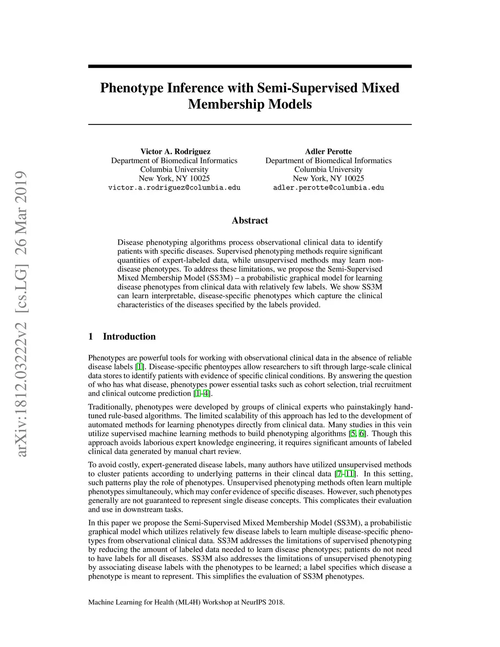 Disease phenotyping algorithms process observational clinical data to identify patients with specific diseases. Supervised phenotyping methods require significant quantities of expert-labeled data, while unsupervised methods may learn non-disease phenotypes. To address these limitations, we propose the Semi-Supervised Mixed Membership Model (SS3M) -- a probabilistic graphical model for learning disease phenotypes from clinical data with relatively few labels. We show SS3M can learn interpretable, disease-specific phenotypes which capture the clinical characteristics of the diseases specified by the labels provided.