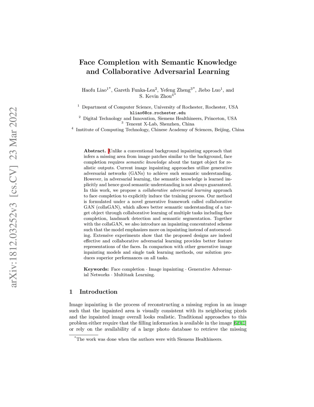 Face Completion with Semantic Knowledge and Collaborative Adversarial