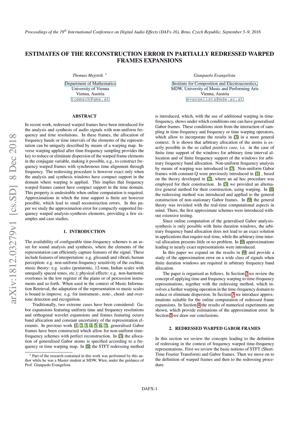 Estimates of the Reconstruction Error in Partially Redressed Warped