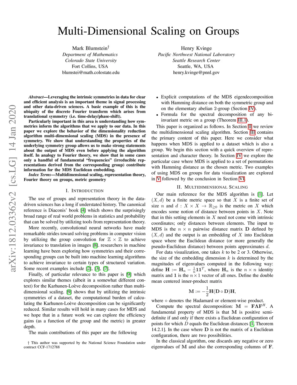 Multi-Dimensional Scaling on Groups