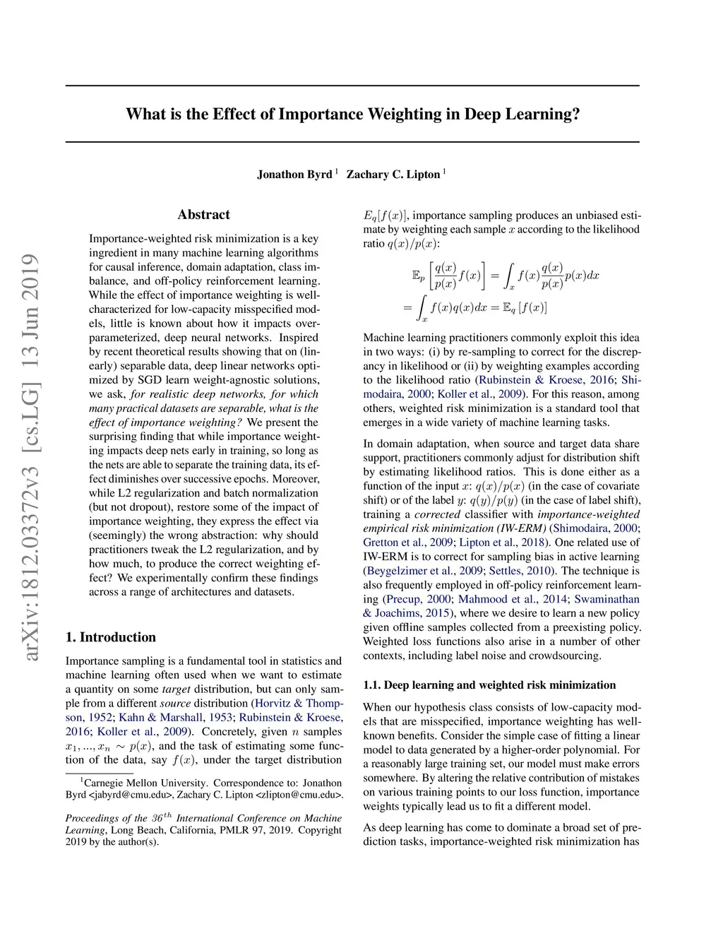 What is the Effect of Importance Weighting in Deep Learning?