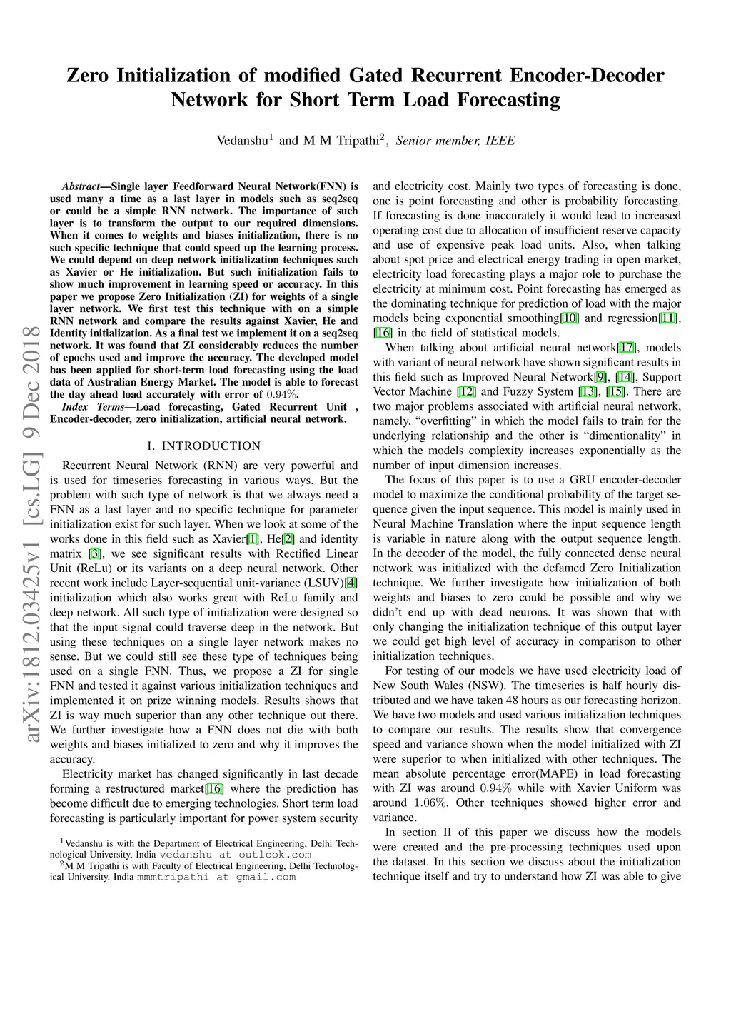Zero Initialization of modified Gated Recurrent Encoder-Decoder Network