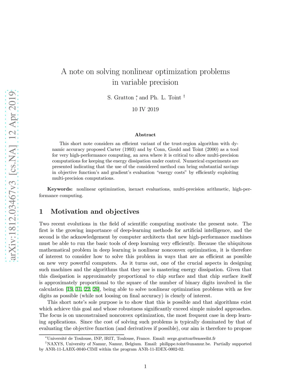 This short note considers an efficient variant of the trust-region algorithm with dynamic accuracy proposed Carter (1993) and Conn, Gould and Toint (2000) as a tool for very high-performance computing, an area where it is critical to allow multi-precision computations for keeping the energy dissipation under control. Numerical experiments are presented indicating that the use of the considered method can bring substantial savings in objective function's and gradient's evaluation "energy costs" by efficiently exploiting multi-precision computations.