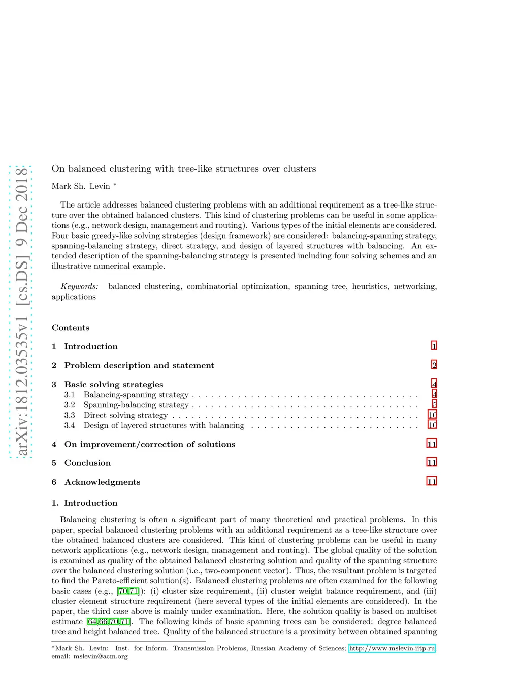 The article addresses balanced clustering problems with an additional requirement as a tree-like structure over the obtained balanced clusters. This kind of clustering problems can be useful in some applications (e.g., network design, management and routing). Various types of the initial elements are considered. Four basic greedy-like solving strategies (design framework) are considered: balancing-spanning strategy, spanning-balancing strategy, direct strategy, and design of layered structures with balancing. An extended description of the spanning-balancing strategy is presented including four solving schemes and an illustrative numerical example.
