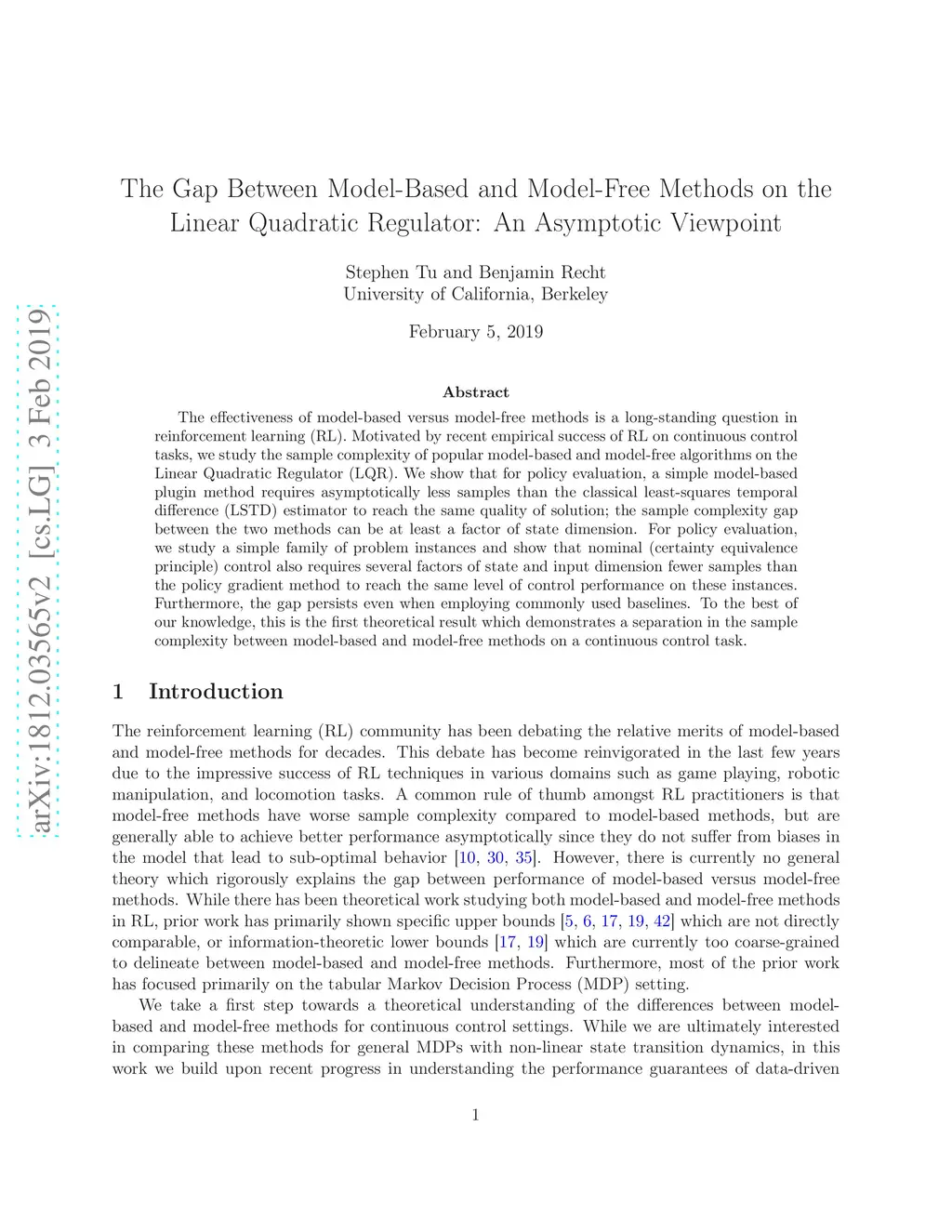 The Gap Between Model-Based and Model-Free Methods on the Linear