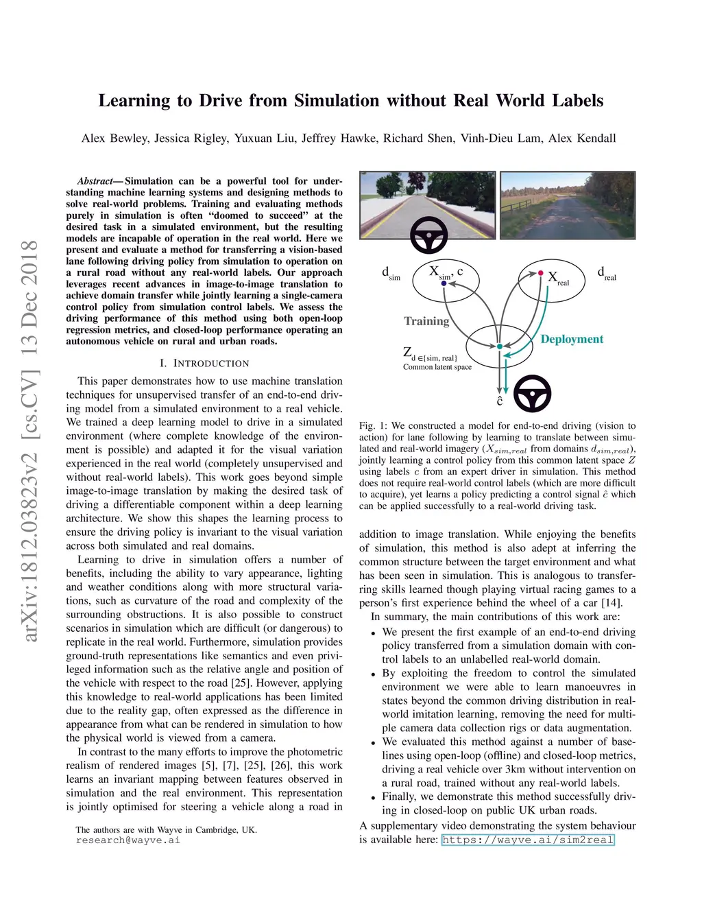 Learning to Drive from Simulation without Real World Labels