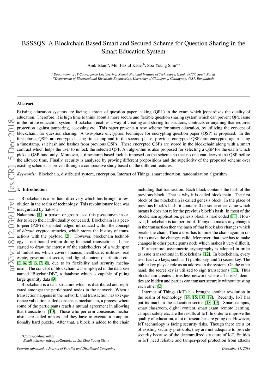 BSSSQS: A Blockchain Based Smart and Secured Scheme for Question Sharing