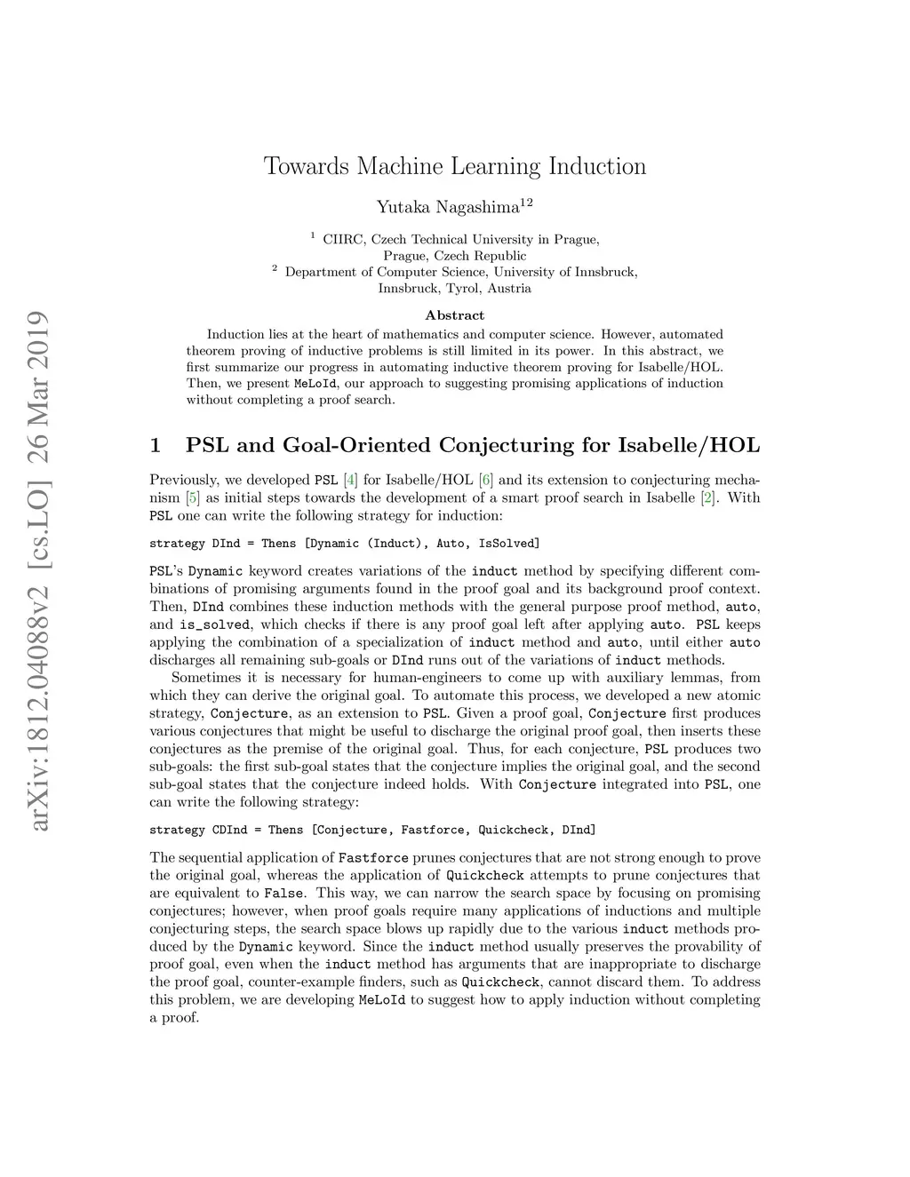 Induction lies at the heart of mathematics and computer science. However, automated theorem proving of inductive problems is still limited in its power. In this abstract, we first summarize our progress in automating inductive theorem proving for Isabelle/HOL. Then, we present MeLoId, our approach to suggesting promising applications of induction without completing a proof search.
