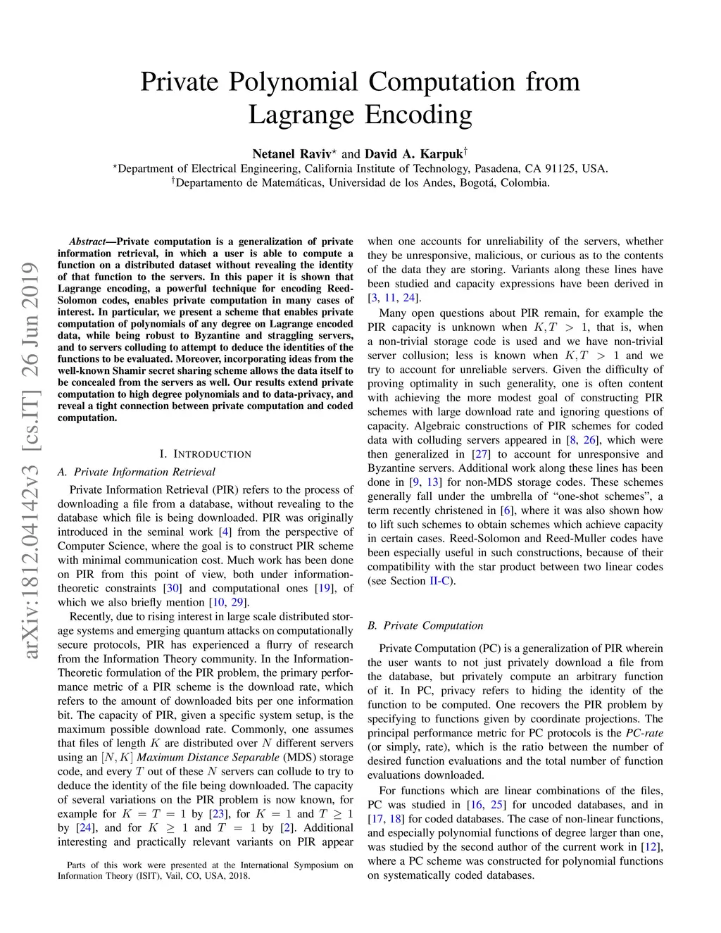 Private computation is a generalization of private information retrieval, in which a user is able to compute a function on a distributed dataset without revealing the identity of that function to the servers. In this paper it is shown that Lagrange encoding, a powerful technique for encoding Reed-Solomon codes, enables private computation in many cases of interest. In particular, we present a scheme that enables private computation of polynomials of any degree on Lagrange encoded data, while being robust to Byzantine and straggling servers, and to servers colluding to attempt to deduce the identities of the functions to be evaluated. Moreover, incorporating ideas from the well-known Shamir secret sharing scheme allows the data itself to be concealed from the servers as well. Our results extend private computation to high degree polynomials and to data-privacy, and reveal a tight connection between private computation and coded computation.