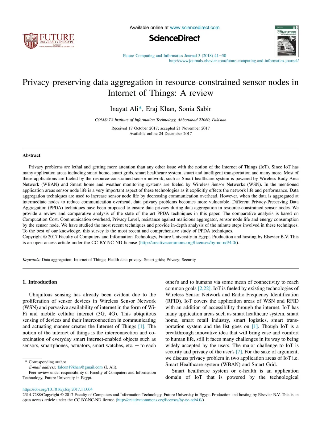 Privacy-preserving data aggregation in resource-constrained sensor nodes
