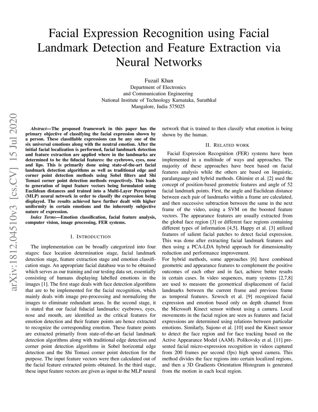 Facial Expression Recognition using Facial Landmark Detection and