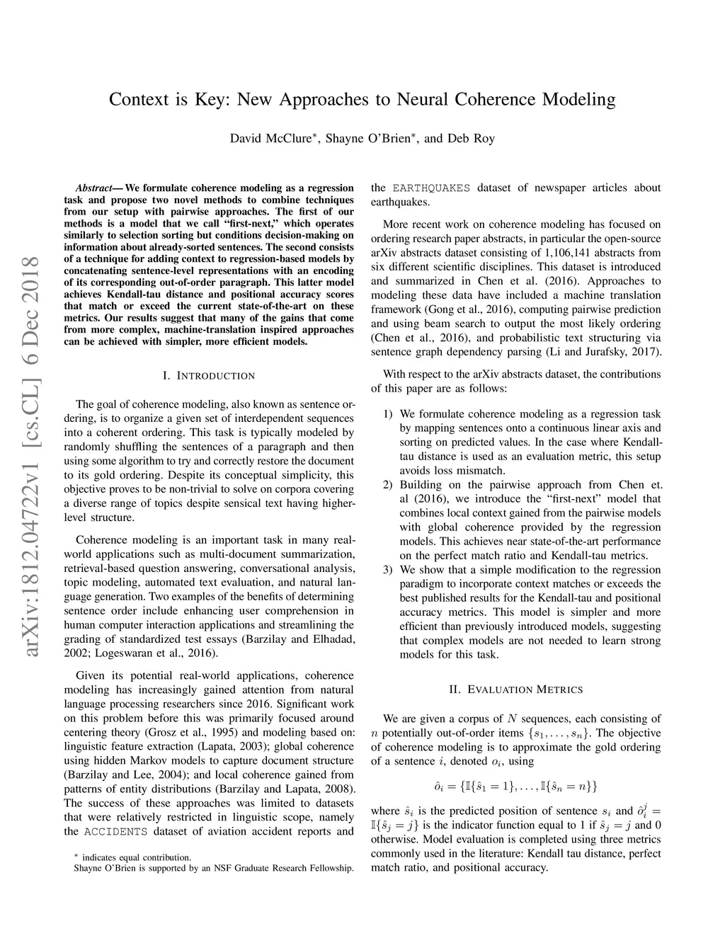 Context is Key: New Approaches to Neural Coherence Modeling