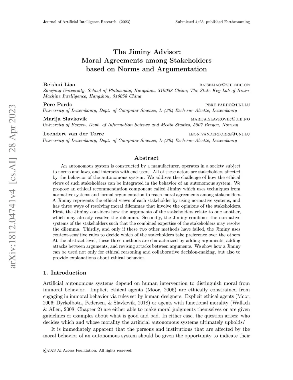 The Jiminy Advisor: Moral Agreements Among Stakeholders Based on Norms