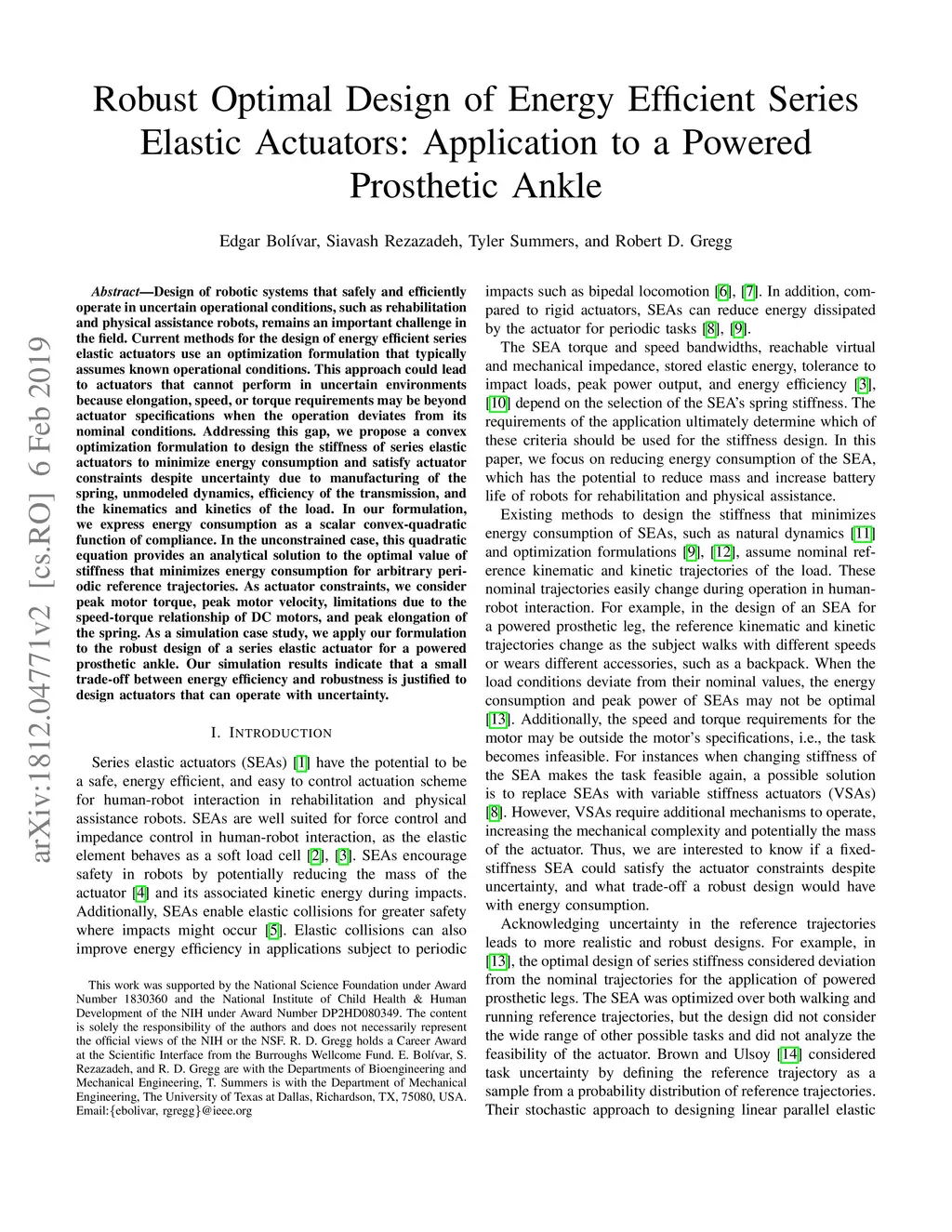 Robust Optimal Design of Energy Efficient Series Elastic Actuators: