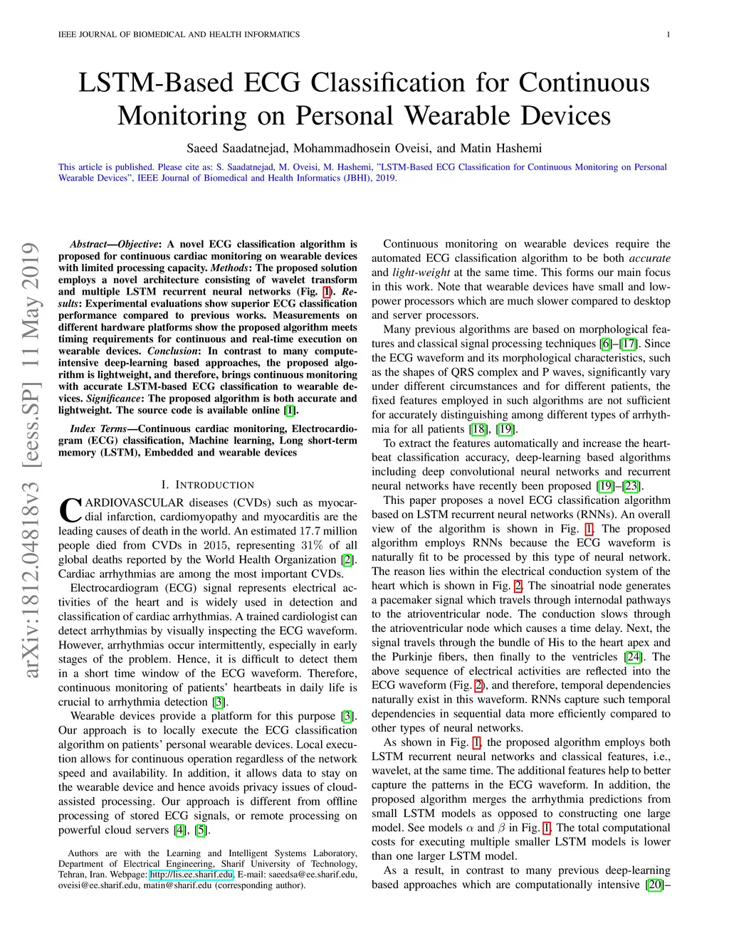 LSTM-Based ECG Classification for Continuous Monitoring on Personal