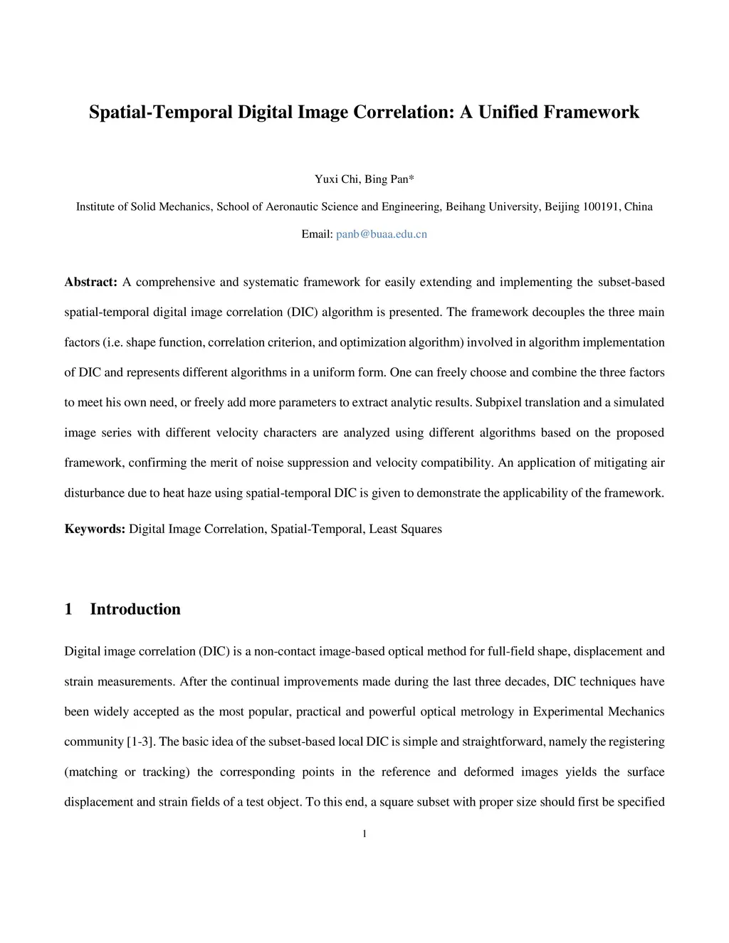 Spatial-Temporal Digital Image Correlation: A Unified Framework