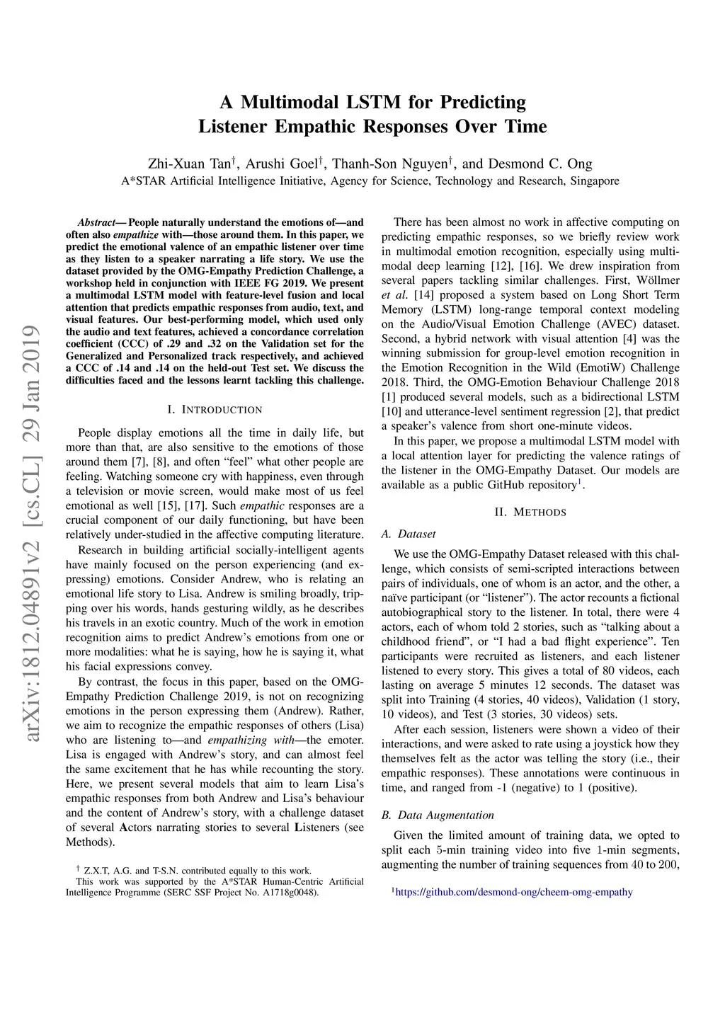 A Multimodal LSTM for Predicting Listener Empathic Responses Over Time